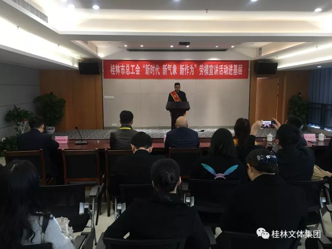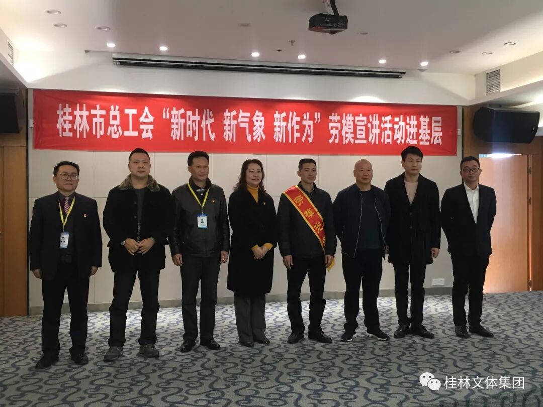 为庆祝改革开放40周年,深入学习贯彻党的十九大精神和习近平新时代中国特色社会主义思想,进一步弘扬劳模精神和工匠精神,11月22日,桂林市文体集团参加了桂林市总工会组织开展的“新时代新气象新作为”全市劳模宣讲活动。